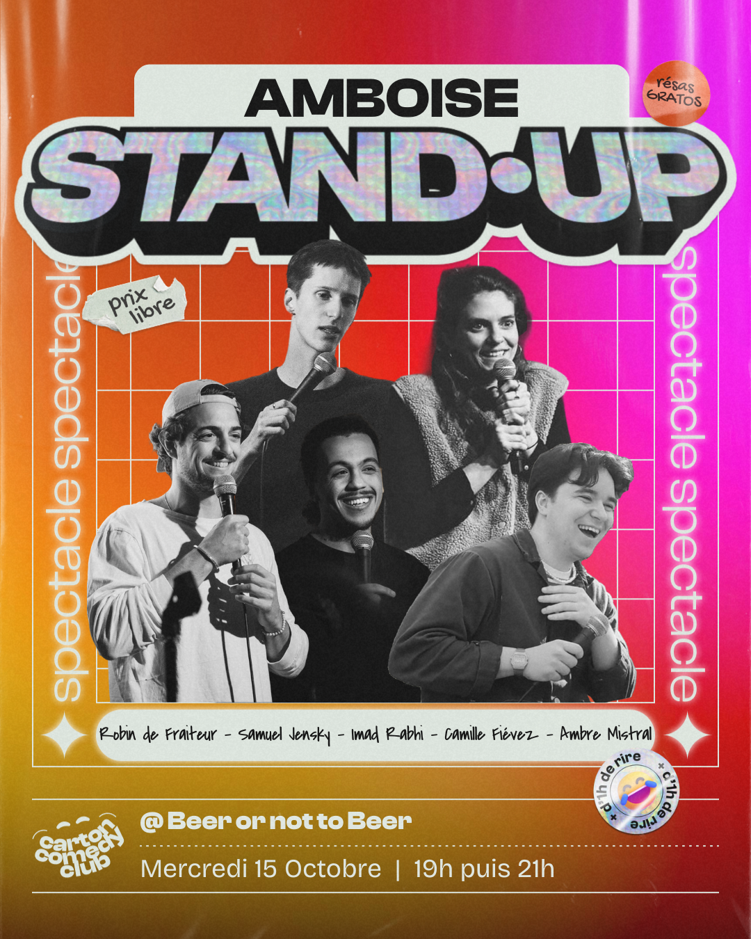 Profitez d'un moment exceptionnel de rire grâce à notre sélection d'humoristes pro un peu partout en France, toujours en billetterie à prix libre !