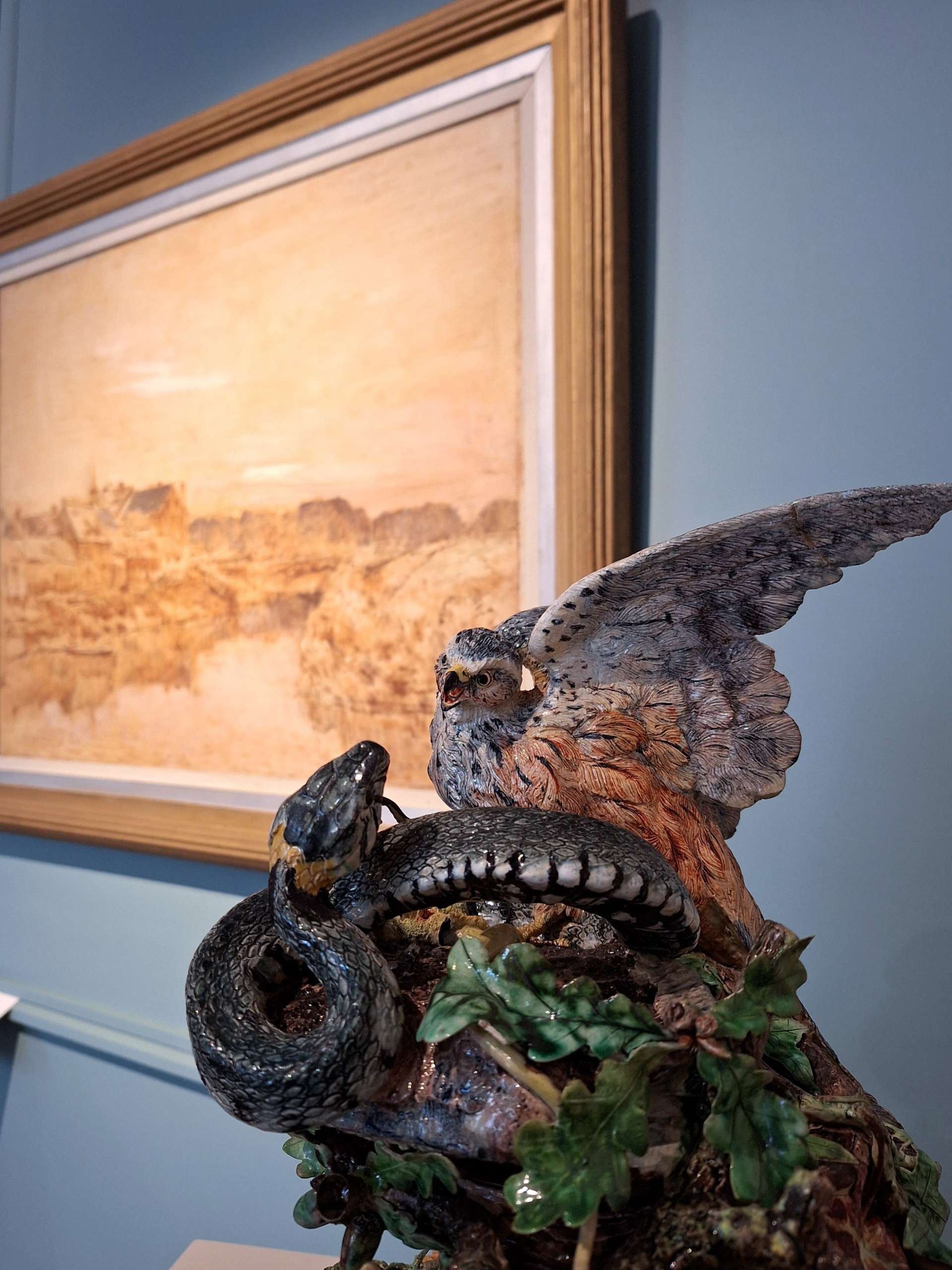 Faune de Simone Boisecq évoque la figure mythologique du demi-dieu sauvage, incarnant la fusion entre l’homme et la nature dans une sculpture aux formes abstraites. La Chute d’Icare de Marc Chagall revisite la légende antique dans un tourbillon de couleurs oniriques, où l’envol tragique du héros devient un symbole de rêve et de perte. L’Enlèvement d’André Masson, avec son style surréaliste et organique, réinterprète le thème de l’abduction mythologique en une scène troublante et mouvementée. Enfin, L’Enlèvement des Sabines de Pablo Picasso déconstruit le célèbre épisode romain dans un langage cubiste puissant, où les corps entrelacés traduisent violence et chaos.