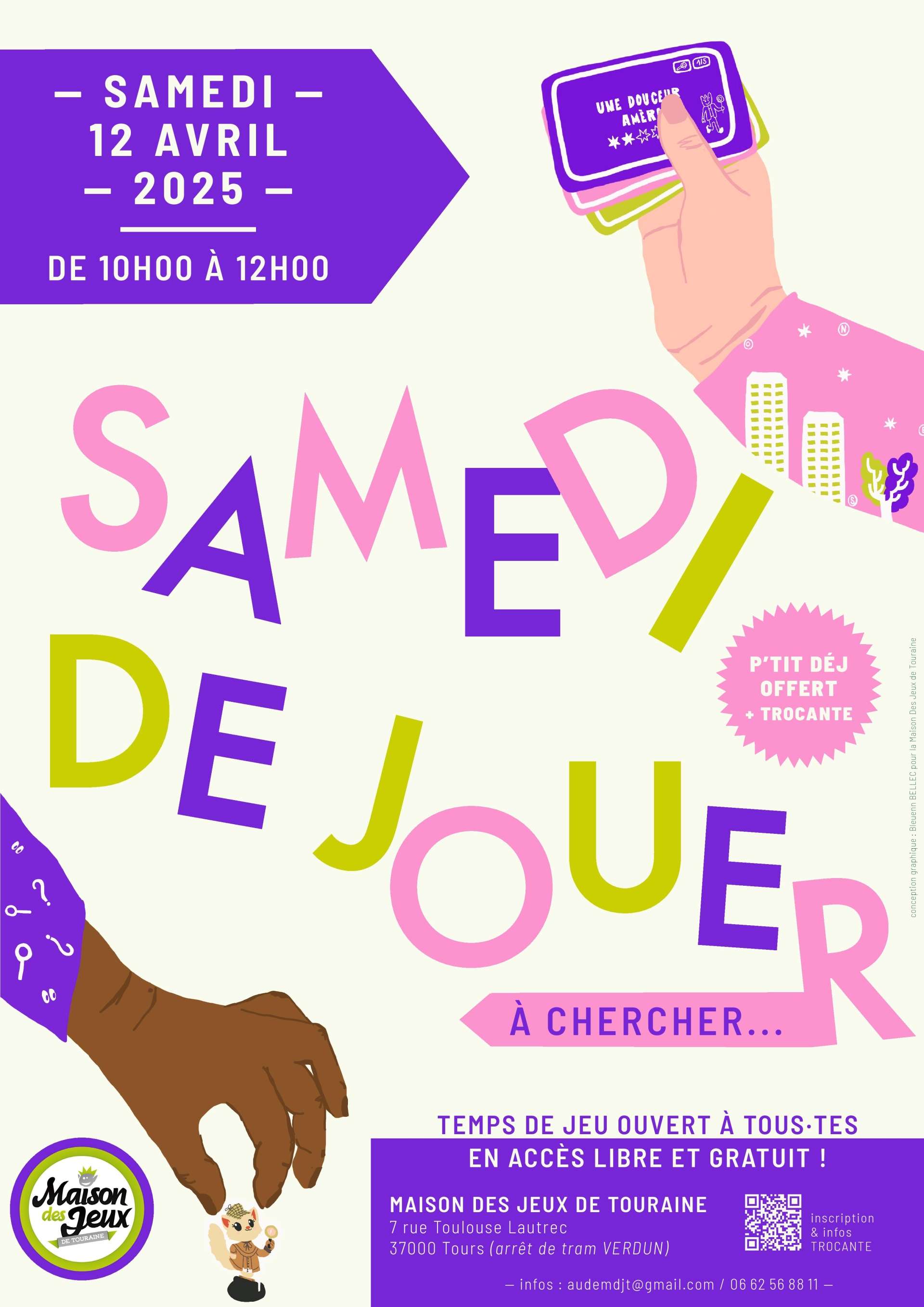 Samedi 12 avril 2025 vient jouer à chercher à la Maison des jeux de Touraine de 10h à 12h !