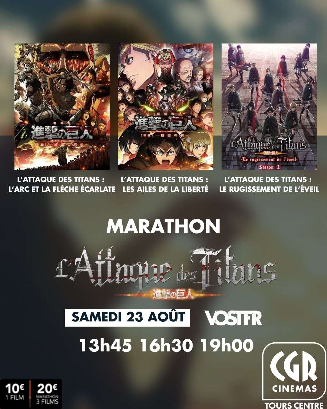 Le CGR Tours Centre vous accueille tous les jours de l’année de 10h30 à 22h30.
