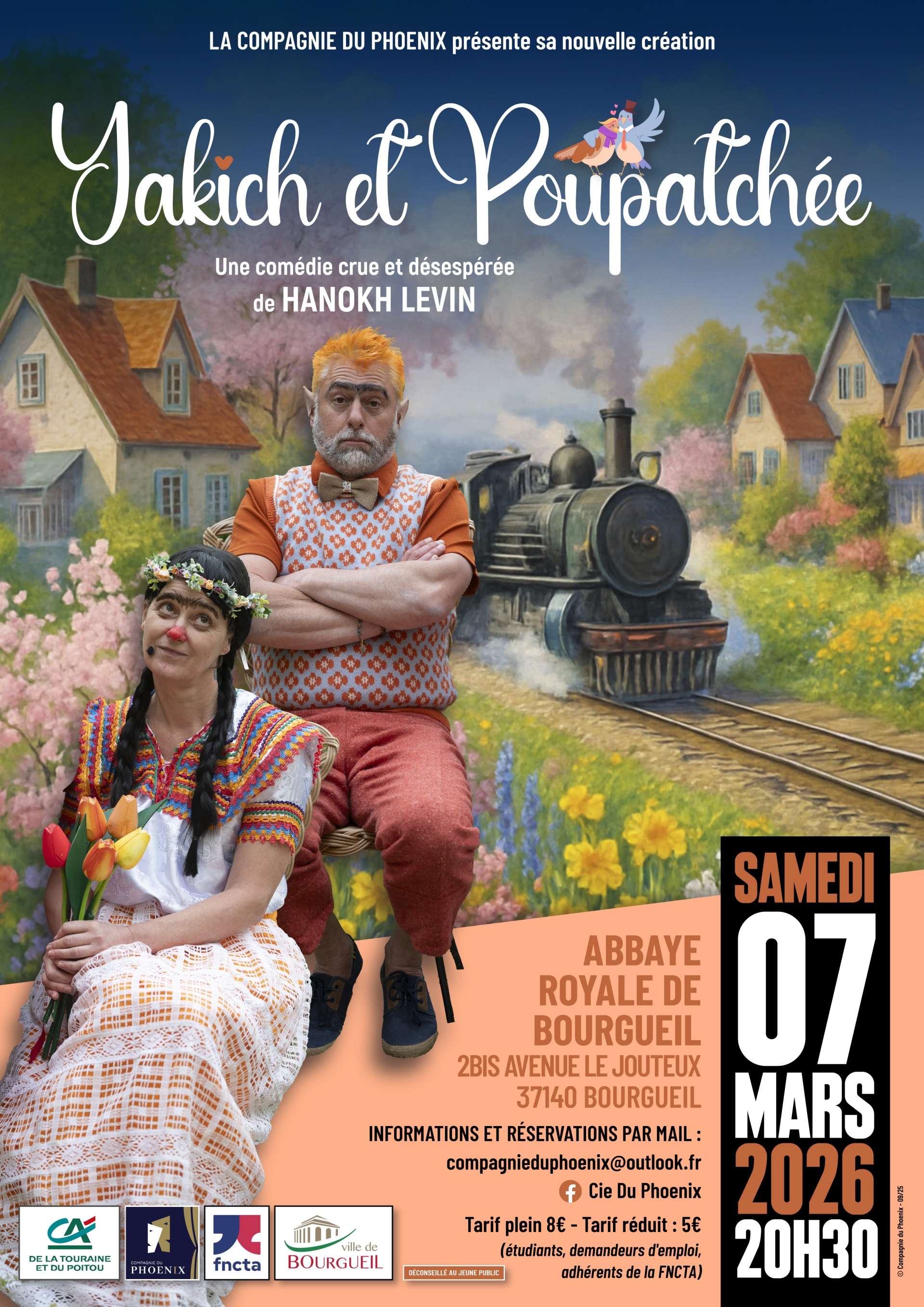 Culture • Théâtre • Comédie Sam. 07 Mars 2026 20:30 Yakich et Poupatchée Une comédie crue et désespérée de Hanokh Levin Abbaye de Bourgueil