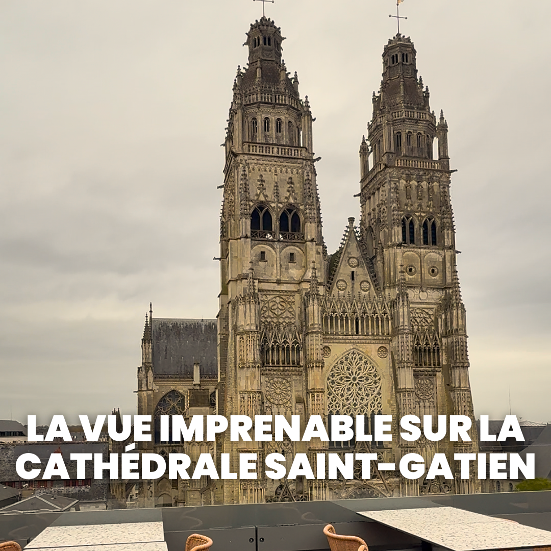 Ce qui frappe d'abord, c'est le choc visuel. D’un côté, la majestueuse Cathédrale Saint-Gatien semble à portée de main, offrant un panorama à couper le souffle. De l’autre, la vue s’étend sur la Bibliothèque de Tours, la Tour Charlemagne et les toits historiques de la ville. C'est simple : il n'existe aucun autre endroit à Tours offrant une telle immersion dans le patrimoine local.
