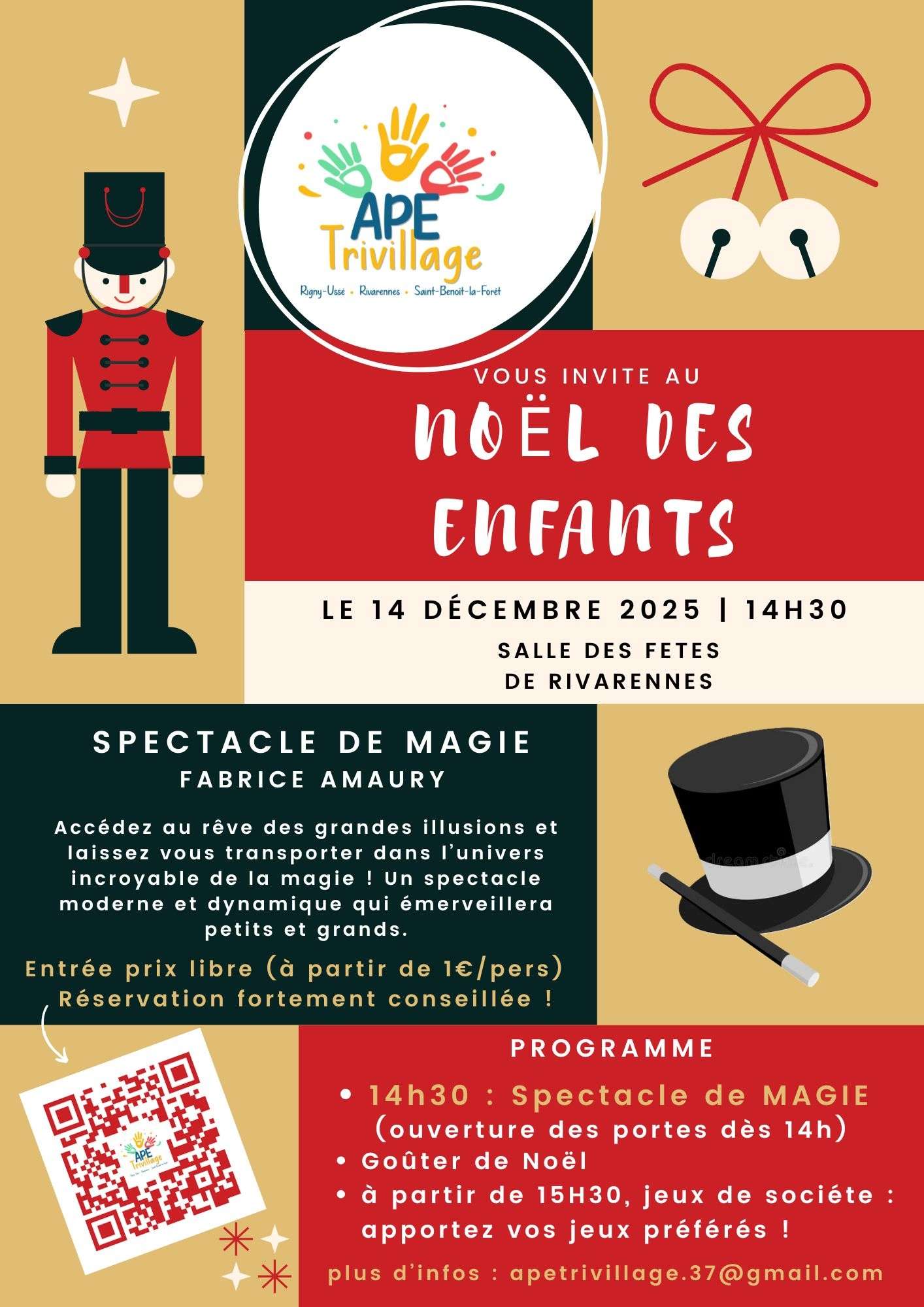 Jeune Public Dim. 14 Déc. 2025 14:30 Spectacle de magie Fête de Noël de l'APE à Rivarennes Rivarennes • Salle des fêtes Magie