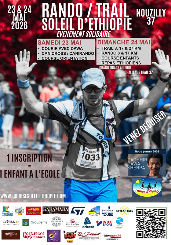 Sportif • Autre Dim. 24 Mai 2026 08:01 Trail Soleil d'Ethiopie Nouzilly • Stade des marroniers Randonnée